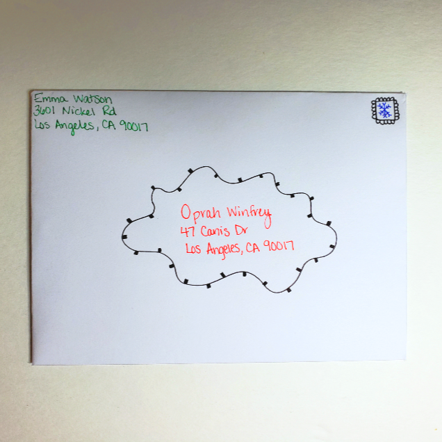 Don’t you think the string lights liven up the white envelope? The string lights are incredibly easy to draw and allow for some serious creativity. Have fun with it and allow yourself to go a little crazy :) Let's get to it!!